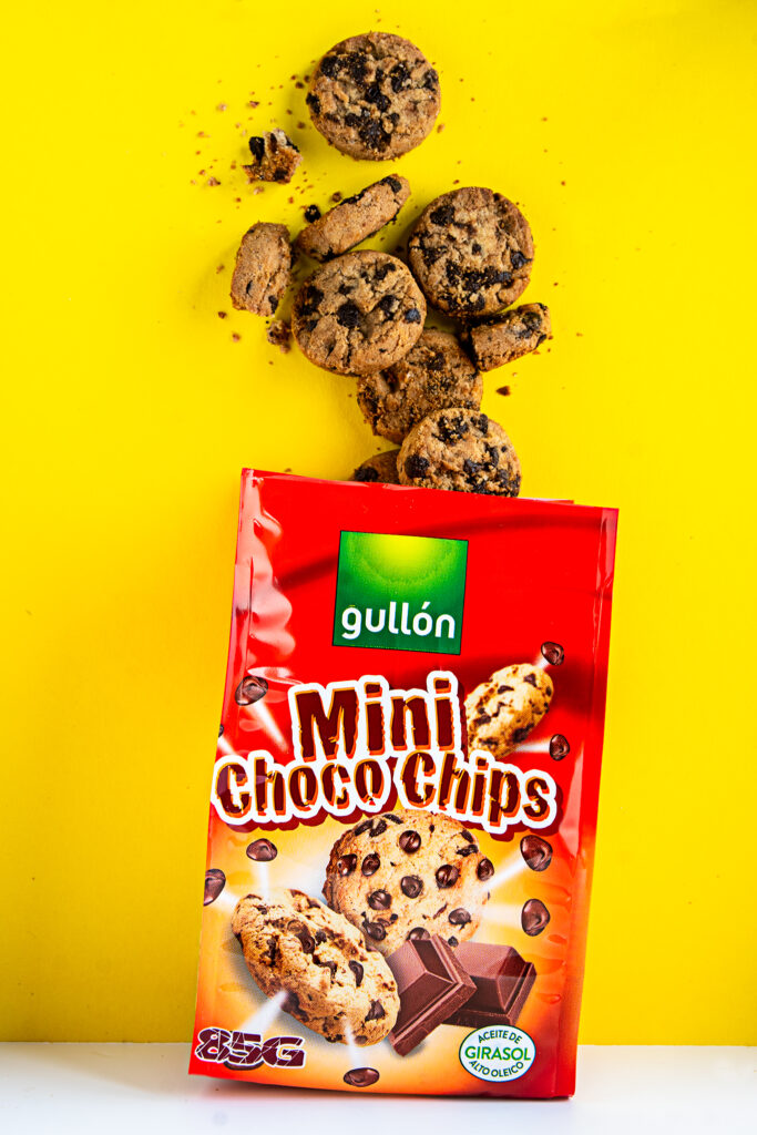 Tämä oli myös hyvä syy ostaa kaupasta suklaakeksejä eli pääsin harjoitteleman hiukan lisää tuotekuvausta. Kotona huomasin ettei ollutkaan vihreää taustakartonkia, joka olisi ollut punaisen pakkauksen vastaväri eli kuvasin sitten keltaista taustaa vasten.